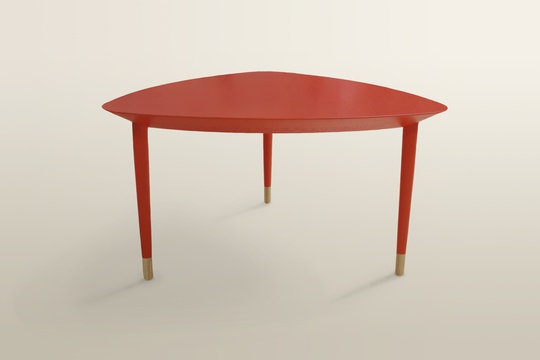 The Red Project was a commission from Sir Terrance Conran, as part of an exhibition of unique and customised work by leading designers. The 3 leg dining table is designed to seat 6 people. The soft triangular form is