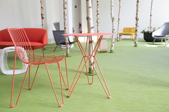 We used Birch trees throughout the platform gallery and Bolon flooring to create a woodland setting for the exhibition and interspersed this with furniture and lighting by a variety of Scandinavian manufacturers. A communal seating area for the café along with authentic food was served throughout the week, as well